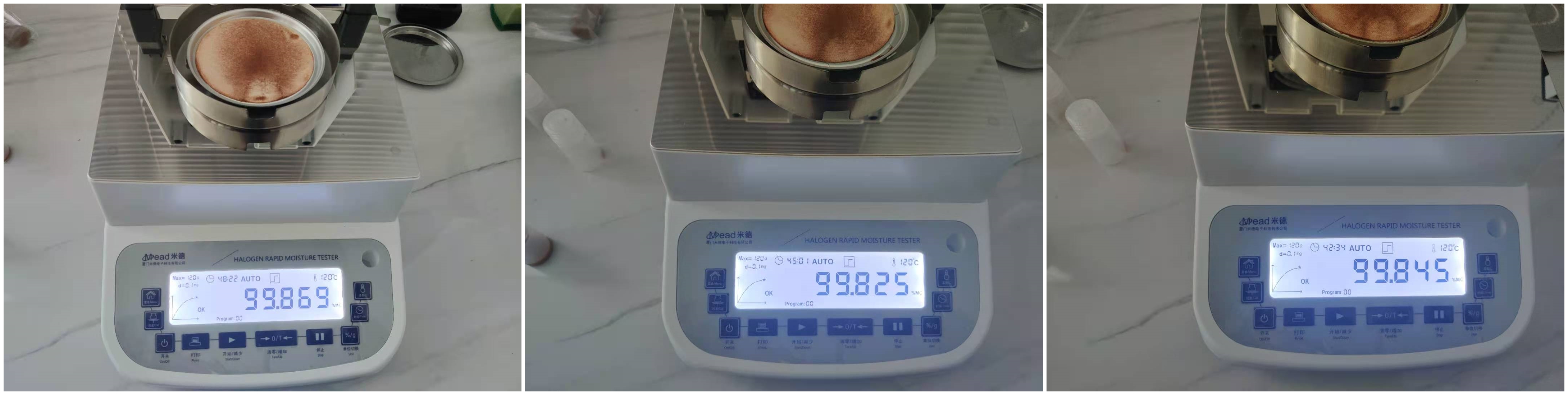 測試儀器:米德QL-100D固含量檢測儀(稱重精度0.0001g,水分解析0.001%)