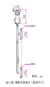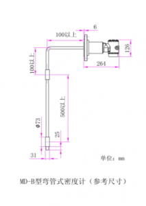 1: 直接式?在線液體密度計傳感器部分間距最少為200mm,直徑為50mm, 現(xiàn)場不能小于這些尺寸安裝,如選擇彎曲型密度計,請測量好可以伸進管內的法蘭和長度尺寸.